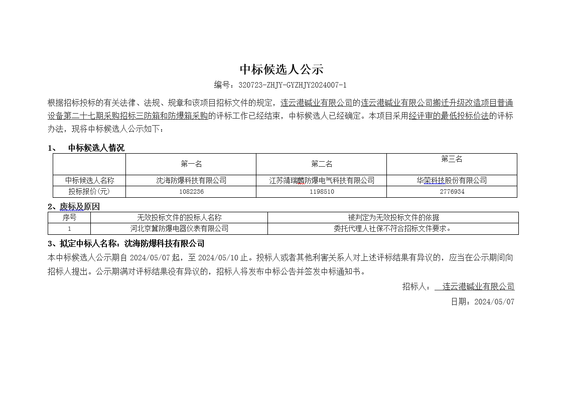 搬遷升級(jí)改造項(xiàng)目普通設(shè)備第二十七期采購招標(biāo)三防箱和防爆箱采購中標(biāo)候選人公示