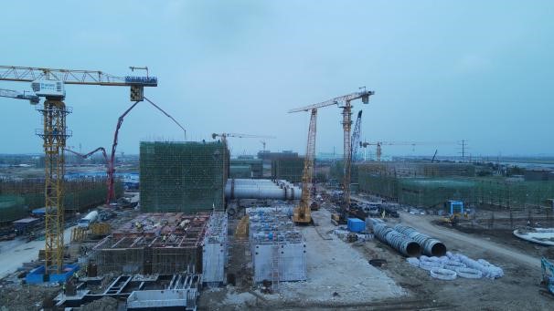⑸合成氨二標(biāo)段271原料煤儲運破碎樓三層澆筑;#1轉(zhuǎn)運站五層腳手架搭設(shè),鋼筋綁扎;#2轉(zhuǎn)運站三層腳手架、模板拆除,四層腳手架搭設(shè),鋼筋綁扎,支模;汽車卸煤區(qū),煤筒倉外側(cè)土方土方挖取,圍檁安裝;820合成氨循環(huán)水站清凈廢水池鋼板樁拔除;塔下水池1支撐架搭設(shè),鋼筋綁扎;塔下水池2支撐架搭設(shè),對拉螺栓割除;吸水池1基坑開挖準(zhǔn)備;711煤漿制備二層腳手架搭設(shè),梁板柱支模,鋼筋綁扎,埋件安裝;762壓縮機廠房基礎(chǔ)短柱防腐;剩余設(shè)備基礎(chǔ)鋼筋綁扎,模板支設(shè);763空分后備系統(tǒng)上部結(jié)構(gòu)鋼筋綁扎,預(yù)埋件安裝,支模;764儀表空壓站基礎(chǔ)墻防腐;831空分變電所首層結(jié)構(gòu)鋼筋綁扎,埋件安裝,支模;761冷箱基礎(chǔ)冷箱設(shè)備帶板拼接施工;膨脹機房上部結(jié)構(gòu)鋼筋綁扎預(yù)埋螺栓安裝;712氣化框架立柱腳手架搭設(shè),鋼筋綁扎;灌注樁施工;樁基大小應(yīng)變檢測;基坑開挖準(zhǔn)備;塔吊附近承臺基坑回填;842空分機柜間板墻鋼筋綁扎;713渣水處理集渣池支撐架搭設(shè),鋼筋綁扎,支模;設(shè)備基礎(chǔ)錨固鋼筋焊接。