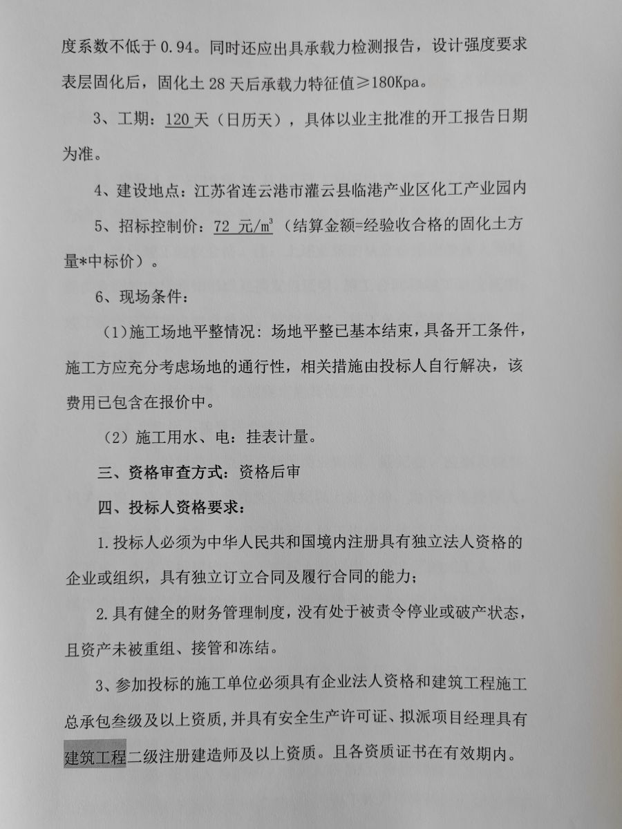 連云港堿業(yè)有限公司搬遷升級改造項目第二期固化土工程招標公告