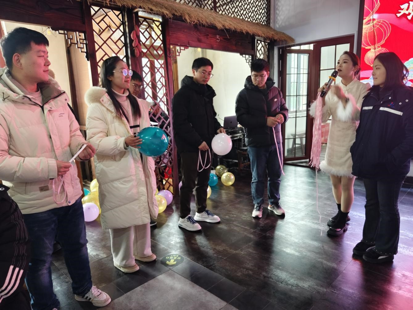 聯(lián)誼活動正式開始!首先,主持人通過抽取撲克牌的趣味游戲,為青年男女們分組配對,幫助他們打破冰層,迅速熟絡。緊接著,不同組的青年男女們積極踴躍地參加踩氣球、運氣球趣味活動,他們彼此間的距離也愈發(fā)拉進。本次活動中,獲得游戲勝利的隊伍可以獲得紅包獎勵,而失敗的隊伍則需要接受懲罰,添加在場異性青年或隊友的微信。