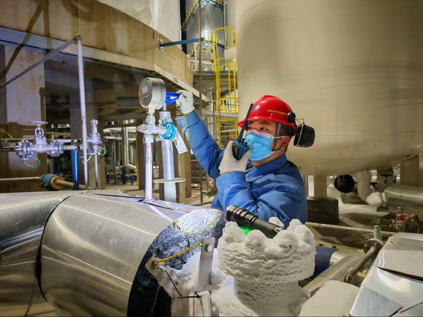 “春節(jié)期間,我們一定堅(jiān)守崗位,保持最佳狀態(tài),確保各項(xiàng)工作有序推進(jìn)。” 空分車間員工堅(jiān)定地說道。“春節(jié)期間更要打起十二分精神,不能有絲毫懈怠。” 他們密切關(guān)注著設(shè)備的運(yùn)行參數(shù),仔細(xì)記錄著每一個(gè)數(shù)據(jù)。“走,除夕夜檢查不能停,一定要確保萬無一失。”夜色中,他們頂著瑟瑟寒風(fēng)認(rèn)真巡檢,檢查空壓機(jī)運(yùn)行狀態(tài),保障儀表氣穩(wěn)定供應(yīng)。為了確保后序工段氮?dú)獯祾吆兔芊鈿夤?yīng),空分車間定時(shí)對真空液氮儲槽進(jìn)行充液,為氮?dú)夤?yīng)保駕護(hù)航。